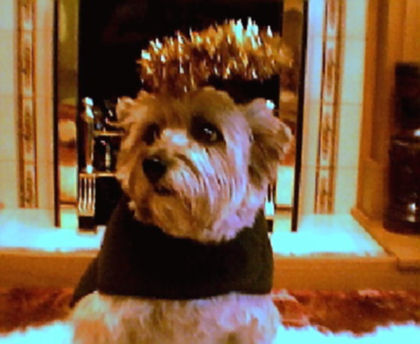 Hello everybody I'm Gigi the Cairn Terrier nice to meet you all I am all dressed up in this photo ready for the Christmas ball. My mum says that I look angelic with my halo round my head. But if I start barking loud she calls me something else instead. I only try to warn my folks about any strangers coming near To our little bungalow when different footsteps I do hear. When I come back from a walk I jump up on the toilet seat To have my paws and bottom wiped and then I have a treat. I like to play with my big cushion that my folks throw for me Laughing at me as I trip while I hold it in my mouth you see. I love it when my family visits I get all yappy and excited And whenever they rub my belly I am absolutely delighted. I am a very much loved little terrier who is happy as can be I only wish all the dogs in the world were loved as much as me.